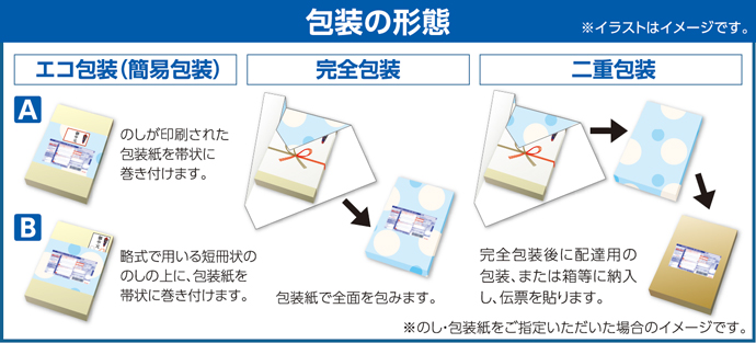 省資源のため、エコ包装(簡易包装)を推進しています。ご協力お願いいたします。二重包装・完全包装・一括包装・手提げ袋をご希望の場合はご注文時に該当項目をお選びになるか「その他」欄に入力ください